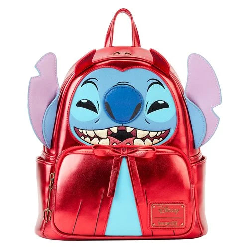 Get ready to celebrate the spooky with your favorite blue alien with this Lilo & Stitch Devil Stitch Mini-Backpack! It is made of metallic faux leather and features top zipper closure and front zippered pocket, adjustable straps, matching themed lining, applique, debossed, embroidered, enamel zipper charm, ribbon, and printed details. This mini-backpack approximately measures 10 1/2-inches tall x 9-inches wide x 4 1/2-inches long. This would make a great gift for any Disney fan! Ages 15 and up.