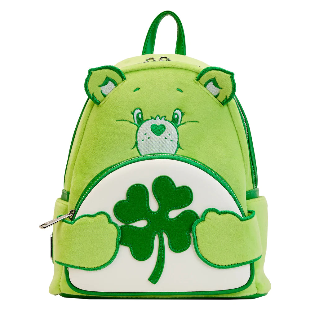 Feeling lucky? The exclusive Loungefly Care Bears™ Good Luck Bear Cosplay Mini Backpack is here to bring good fortune and extra cheer! Covered in soft cuddly plush, this adorable accessory brings Good Luck Bear™ to life with his loveable smile and fuzzy ears. On the front zipper pocket, Good Luck Bear wraps his arms around his clover belly badge. Turn the bag around to see his tail appear next to the Care Bears heart logo, along with clover-printed shoulder straps! Perfect for anyone in need of a friend, this mini backpack is sure to bring extra charm to any outfit. Act fast to collect this 1,000-piece limited edition Loungefly exclusive.