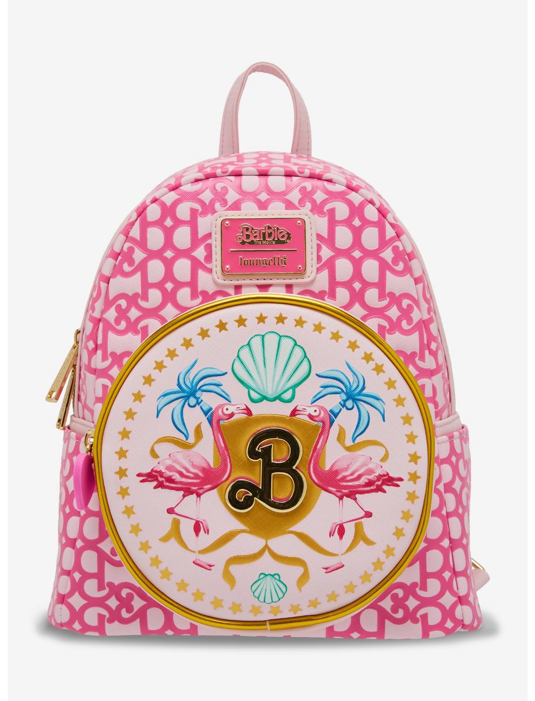 Come on, Barbie, let’s go party in style with this Loungefly mini backpack! Inspired by Barbie The Movie, this vibrant mini backpack features an allover debossed Barbie “B” design. With flamingos decorating the circle front pocket, this bag also sports an enamel “B” emblem on the front and a rubber heart zipper pull making for an ultra-fashionable way to channel your inner-Barbie! Also features adjustable shoulder straps, enamel brand badge, and an allover print Barbie logo interior lining.
