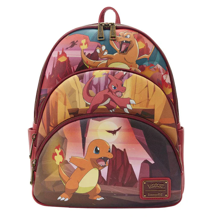 Loungefly Pokemon Charmander Evolutions Triple Pocket Mini Backpack