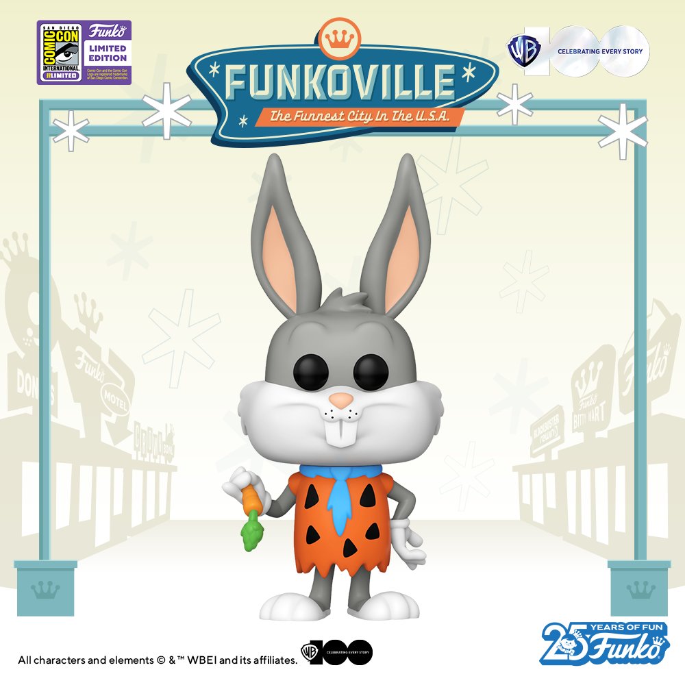 This sly rabbit has found himself in the town of Bedrock, and he’s dressed the part. You’ll have to be quick to catch this 2023 San Diego Comic-Con exclusive Pop! Bugs Bunny™ as Fred Flintstone™. #SDCC2023 #conventionexclusive #Funkoville2023 #WB100