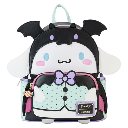 Get ready for the spooky season with this adorable Sanrio Halloween Cinamoroll Vampire Bat Cosplay Mini-Backpack! It is made of faux leather and features top zipper closure and front zippered pocket, adjustable straps, matching themed lining, applique, silicone zipper charm, embroidered, and printed details. This mini-backpack approximately measures 10 1/2-inches tall x 9-inches wide x 4 1/2-inches long. Ages 15 and up.